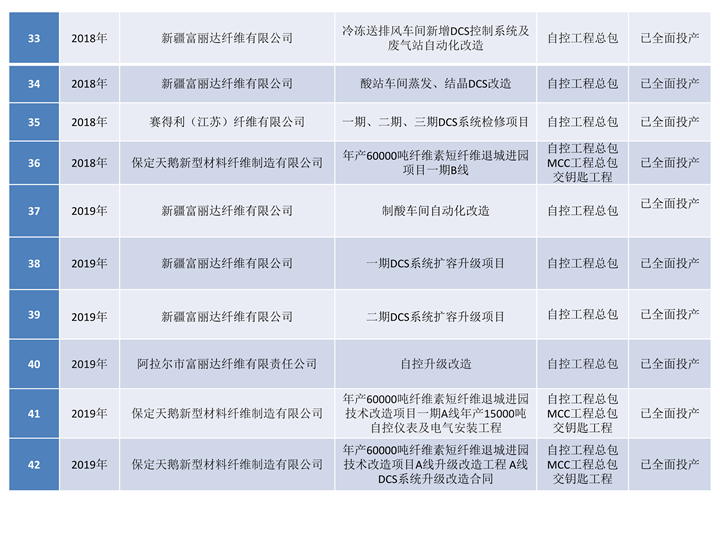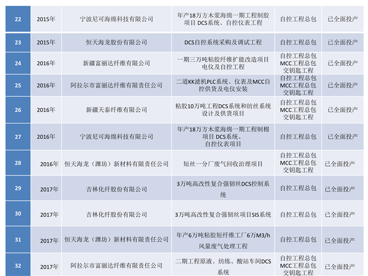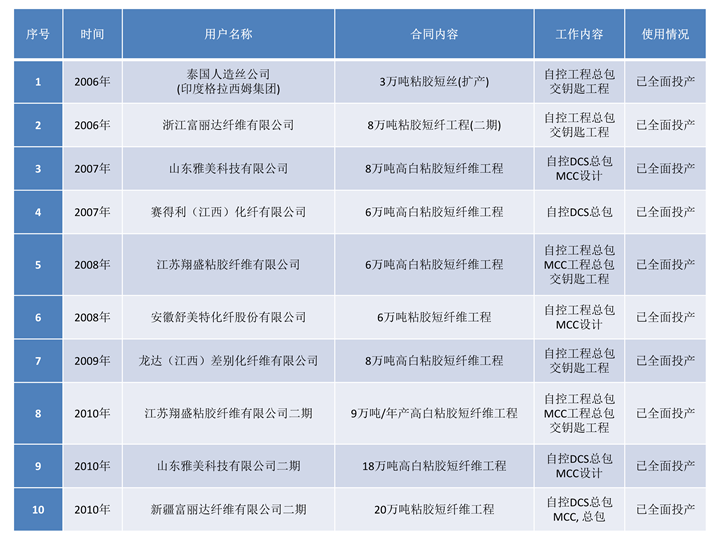 在國內(nèi)近五年新增粘膠工廠建設(shè)中,江西泰德工程有限公司粘膠短纖維生產(chǎn)過程控制系統(tǒng),自控儀表總包,MCC總包,安裝,調(diào)試,開車均一次性投運(yùn)成功,取得了良好的市場(chǎng)聲譽(yù),在國內(nèi)市場(chǎng)超出了50%的市場(chǎng)占有率,本著竭誠為用戶服務(wù)宗旨,確保工程項(xiàng)目穩(wěn)定、可靠實(shí)施。